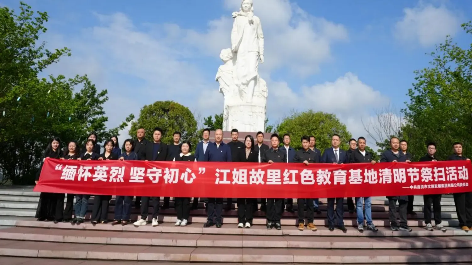 4月3日上午,自贡市文旅发展集团有限公司组织集团领导班子成员、全体中层及以上干部,前往江姐故里红色教育基地开展“缅怀英烈 坚守初心”清明节祭扫英烈活动,深切缅怀革命先烈丰功伟绩,传承弘扬江姐精神,汲取奋进前行的精神力量。
